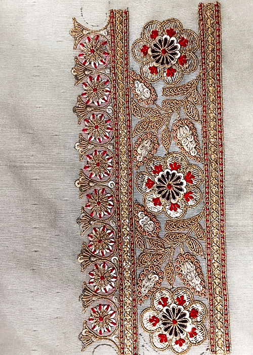 A perfect embellishment for a bridal dresses or for festive mood outfit. You can use this Border alone or add it with other to create a new unique design for your Wedding dress.